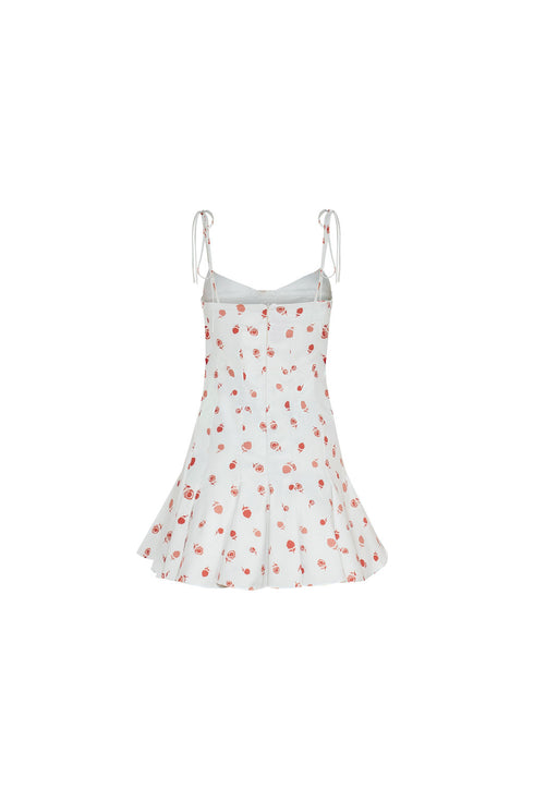Nuestro mini vestido Rosita presenta formas modernas con una feminidad romántica. Confeccionado en un drill stretch, este femenino y alegre vestido está detallado con un estampado de mini rosas original de nuestra marca, cortes y copas en el busto que acentúa la silueta. Combínalo con un par de sandalias de tacón bajo sofisticado.